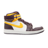 The Air Jordan 1 High Strap features a white-based leather upper with small perforations on the toe box for added breathability. The sneaker also boasts Grand Purple leather overlays on the mudguard, eyestay, heel, and ankle. For an additional touch of color, the sneaker sports Maize accents on the wraparound Swoosh, strap, and on the ankle collar as well.