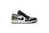 The Air Jordan 1 Low 'Gold Toe' gives a classic silhouette a summertime colorway and a low-top cut to match. Metallic Gold, white and black dominate the upper on this colorway, which was released in July 2019. Black covers both its tongue and the Jumpman branding on it, as well as the iconic Nike Swoosh that resides atop a patent leather upper. The Wings logo is emblazoned onto the heel, while a clean white midsole and black rubber outsole complete the look.