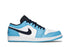 The Air Jordan 1 Low ‘UNC’ gets dressed in a familiar color scheme that pays homage to Michael Jordan’s alma mater, the place where the iconic athlete cultivated his championship mentality. The low-top sports an all-leather upper that combines a crisp white base with Carolina blue overlays and a black signature Swoosh. A blue Jumpman icon is embroidered on the black nylon tongue, while a stitched Wings logo decorates the back heel. The sneaker rides on a durable rubber cupsole with encapsulated Air-sole cushioning.
