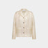 The shirt features a polished silhouette adorned with gold-tone piping, subtly highlighting the seams and framing the motif. Its horn button front closure adds a natural, artisanal touch. Light and unlined, the fluid silk-blend twill ensures comfort while maintaining a crisp structure. Ideal for both statement dressing and elevated everyday wear.