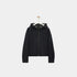 • Hooded collar with leather drawstring detailing