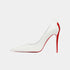 The Maison Margiela Martoubi 25 Pump from the Maison Margiela x Christian Louboutin capsule collection is a masterful fusion of avant-garde design and classic elegance. Crafted in Bianco white nappa leather, the pump features a hand-painted Loubi red brushstroke at the heel, celebrating deconstruction and individuality.