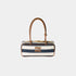 The Miu Miu Beau Canvas and Leather Bag with Stripe Motif blends playful elegance with Miu Mius signature structure. Its compact silhouette and nautical-inspired stripes evoke a timeless summer wardrobe, making it the perfect statement piece for sunny getaways or refined everyday wear.