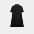 The classic shirt collar and short sleeves give this mini-dress a chic, tailored appeal, while the flap pockets add a touch of structured charm. The side zipper closure ensures a sleek finish, enhancing the graceful movement of the flared hem. Jewel buttons subtly illuminate the design, creating an understated yet sophisticated sparkle.