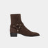 Crafted from premium calfskin suede, these boots exemplify Saint Laurents meticulous approach to quality and signature rock-chic aesthetic. The dark chocolate hue adds depth and versatility, while the Blake construction ensures flexibility and durability with every step. The dual-chain harness and pull-on tab add character and convenience to a classic profile.