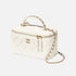 This long vanity bag is crafted in soft lambskin leather, giving it a luxurious touch and refined appearance. The white finish is beautifully complemented by delicate imitation pearls and polished gold metal hardware. Compact yet structured, it is designed to carry your daily essentials in true Chanel style. The addition of a long chain allows for versatile styling, making it ideal for crossbody or shoulder wear. Its timeless shape and elegant materials make it a lasting piece in any designer collection.