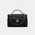 Meticulously crafted in shiny grained calfskin, this vanity bag reflects Chanel's commitment to enduring luxury. Its 6.7 × 7.7 × 2 in structure features a high-gloss finish that enhances the tactile richness of the leather, complemented by silver tone metal accents and a signature leather-woven chain strap for effortless crossbody wear.