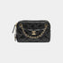 The Mini Camera Case is crafted from high-quality shiny lambskin, offering a soft and polished texture that enhances its luxurious appeal. Gold-tone metal accents add a touch of glamour, elevating its design. Measuring 12 x 18 x 7 cm, the compact dimensions ensure practicality without compromising on style.