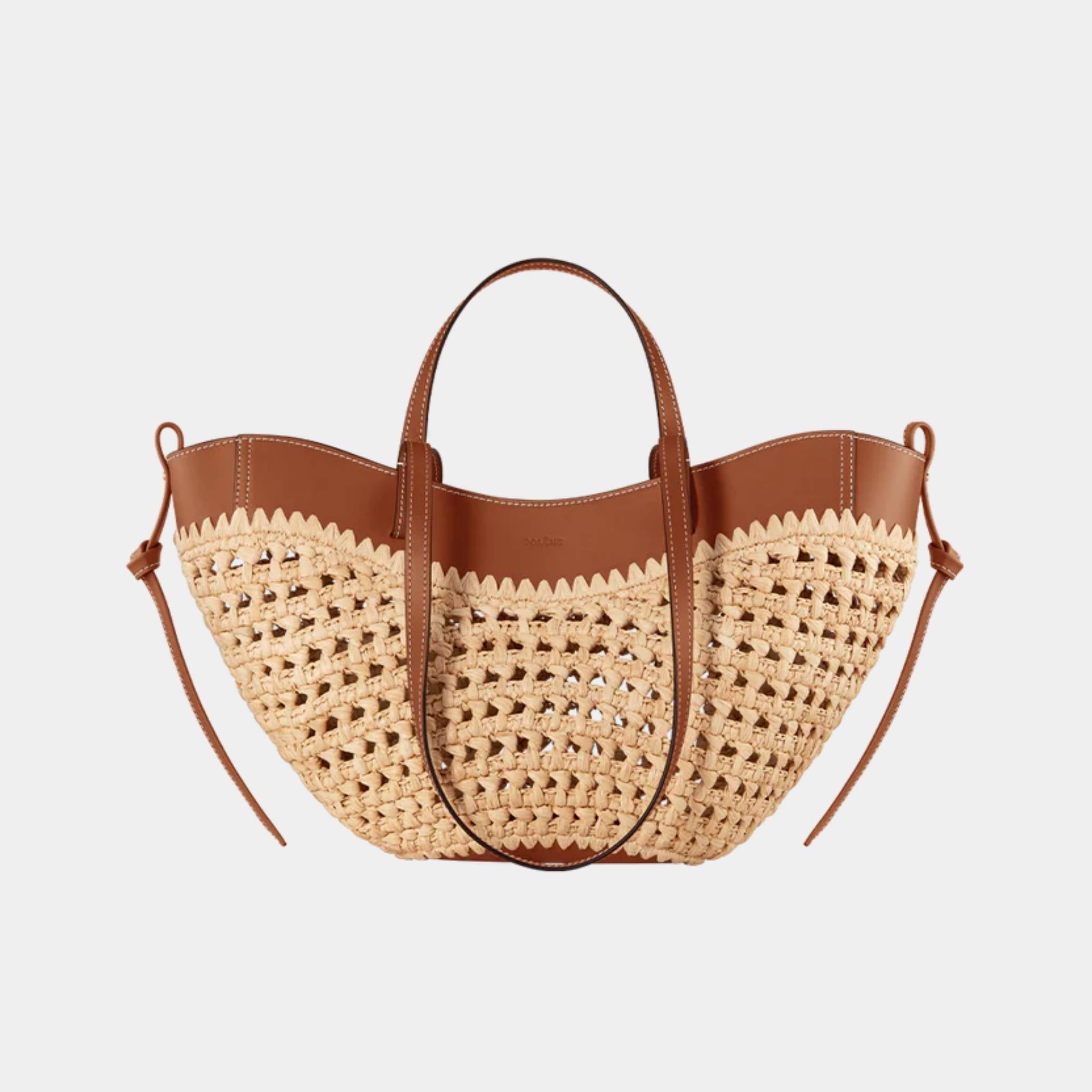 The Polène Mini Cyme is a sculptural tote bag that seamlessly blends architectural form with feminine elegance. Defined by its graceful waves, curves, and folds, this versatile piece can be worn in two distinct styles: open in a basket shape with outer straps, or closed like a blooming flower with straps crossed on the inside.